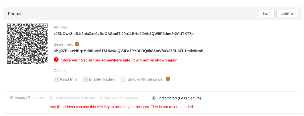 Step 6. Enable Withdrawals if desired, and restrict access to your IP address only